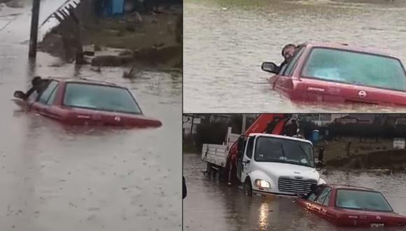 Durante las fuertes lluvias que se vienen registrando en la región Pasco, un conductor y su automóvil quedaron atrapados en medio de una gran inundación, el hecho fue registrado por los vecinos y personas que estaban cerca del Incidente.