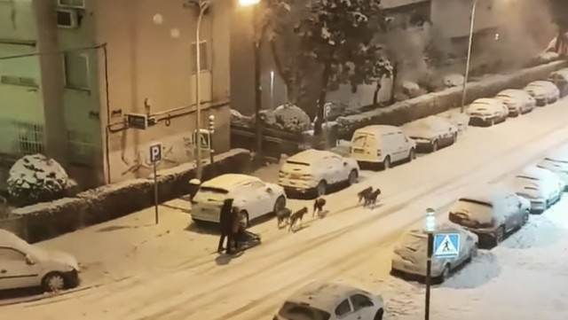 La nevada que ha caído en Madrid ha paralizado la capital española, pero también ha dejado imágenes insólitas, como la de un hombre paseándose por las calles en un trineo jalado por perros.