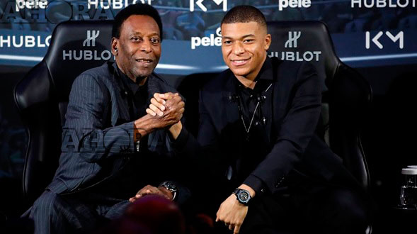 Pelé y Mbappe se reunieron en la capital de Francia para un evento publicitario de una famosa marca de relojes que auspicia a ambos.