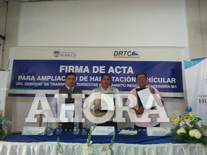 Los 780 vehículos de 43 empresas que dan servicio interprovincial de pasajeros en automóviles en el departamento de Huánuco, se beneficiarán con la ampliación de la tarjeta de circulación hasta el 31 de diciembre de 2022, resaltó Jhonny Orizano Pérez, director regional de Transportes y Comunicaciones. Esta se concluye del “Acta de ampliación de la habilitación del servicio de transporte terrestre de la categoría M1 en el departamento de Huánuco”, suscrita por el gobernador regional Juan Alvarado Cornelio, el propio Jhonny Orizano, y Manuel Facundo Tineo, presidente de la Asociación de Transportistas en Automóviles.
