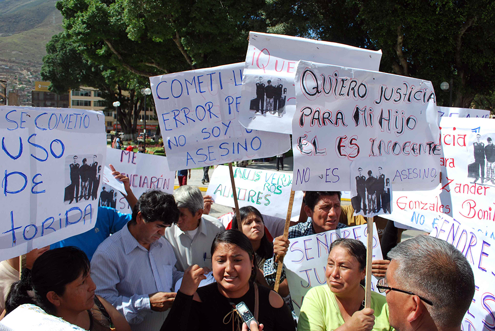 Los familiares del acusado realizaron ayer un plantón frente a la Corte Superior de Justicia de Huánuco pidiendo a la sala que anule la sentencia, asegurando que Gonzales no participó en el asesinato.