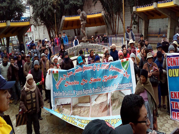 Más de mil comuneros del centro poblado de Sacrafamilia marcharon ayer en protesta contra el cuestionado alcalde del distrito de Simón Bolívar, Zumel Trujillo Bravo, a quien le piden que se disculpe públicamente por los exabruptos y ofensas que lanzó contra el pueblo.