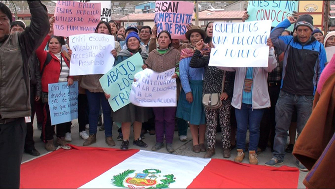 Alrededor de 300 pobladores del distrito de Vilcabamba, provincia Daniel Carrión, ayer realizaron una movilización exigiendo al gobernador regional de Pasco la transferencia de casi nueve millones de soles para la ejecución de dos proyectos educativos.