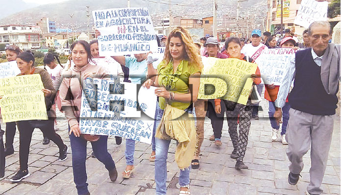 Catalino León Luciano, vicepresidente del Frente de Defensa de los intereses de la localidad de Quicacán, junto a los habitantes del centro poblado, realizó una marcha frente a la sede del Gobierno Regional de Huánuco exigiendo la reversión de tierras del predio Quicacan.