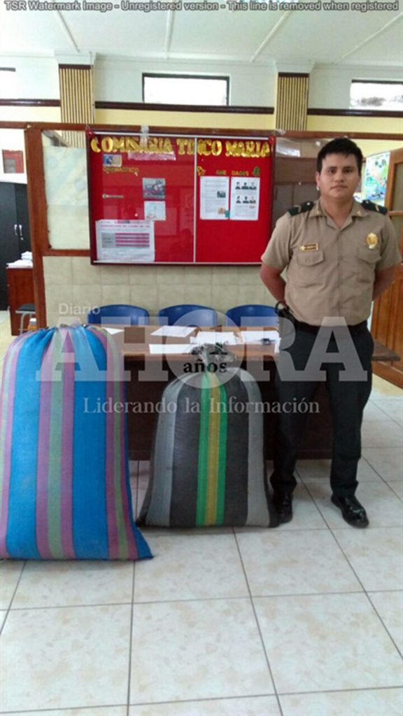 Personal de la comisaría de Tingo María decomisó 70 kilos de coca en el distrito de Castillo Grande, sector de Jacintillo, ubicado en la carretera de acceso al valle del Monzón, donde fue intervenido el vehículo Station Wagon con placa de rodaje C3G-615, conducido por Ignacio Aróstegui Santiago (46). Al registrarlo, hallaron en la maletera varios costales de polietileno con hoja de coca seca, que eran transportados sin permiso otorgado por la autoridad. La coca fue internada en los almacenes de la Empresa Nacional de la Coca, sede Tingo María.