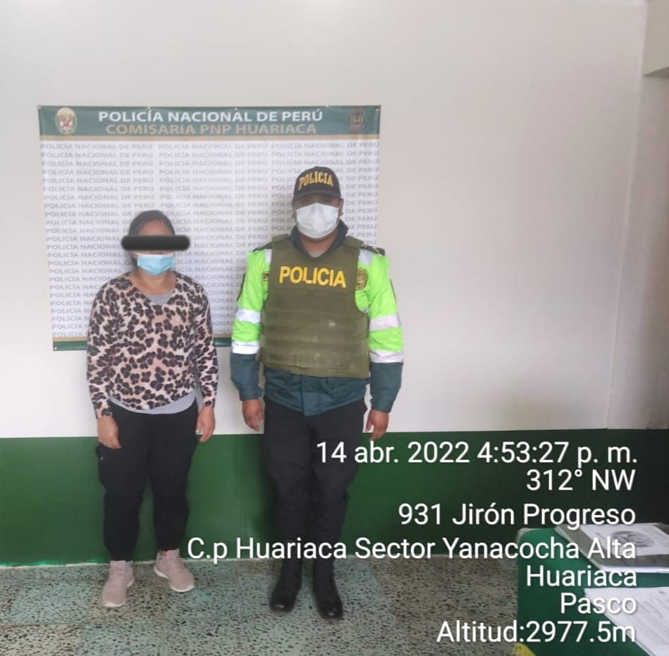 Efectivos de la comisaría de Huariaca, intervinieron y detuvieron a  Marisol Falcón Lafosse (50), quien se encontraba requisitoriada por el  delito de tráfico Ilícito de  Drogas.