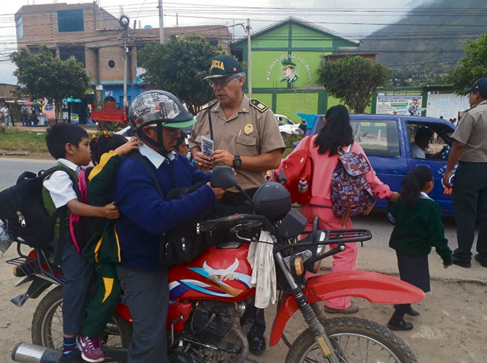 La V Macrorregión Policial de Huánuco inició una campaña de concientización a través de la oficina de Participación Ciudadana y de la Unidad de Tránsito respecto al transporte de menores de edad en motos lineales.