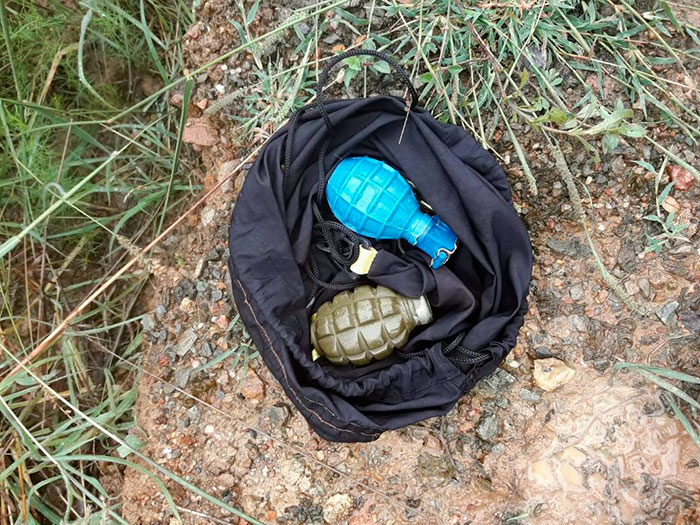 Cuando realizaban acciones de inteligencia, los policías observaron a un sujeto que vestía una gorra negra, chompa modelo Jorge Chávez negra, buzo azul, zapatillas y llevaba sobre la espalda una bolsa deportiva donde se encontraban las granadas. Al ver a los policías arrojó la bolsa y corrió cuesta arriba logrando darse a la fuga. Al revisar el bolso, hallaron las dos granadas, una color verde y la otra celeste, las mismas que fueron trasladadas a la dependencia policial para investigar su procedencia.