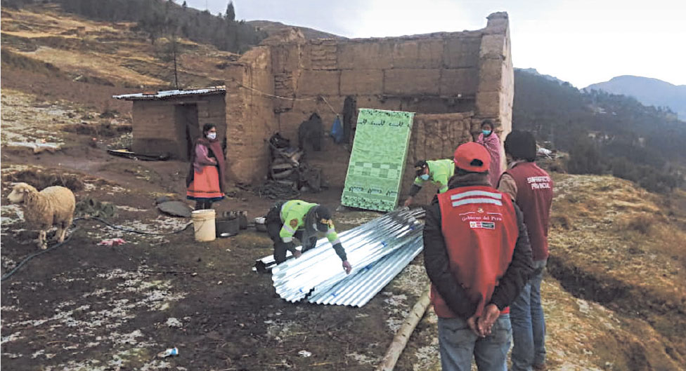 Los policías hicieron una colaboración y compraron planchas de calamina, para techar la vivienda y regalaron un colchón para que el anciano y sus seres queridos, de extrema pobreza, puedan pernoctar abrigados.