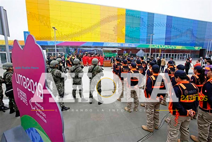 La Fuerza Aérea, la Marina de Guerra, el Ejército del Perú y la Policía, cuidarán las sedes durante el desarrollo de las competencias; otros 23,000 policías patrullarán las calles, en tanto Defensa Civil instalará comandos móviles y los bomberos estarán activos para casos de emergencia.