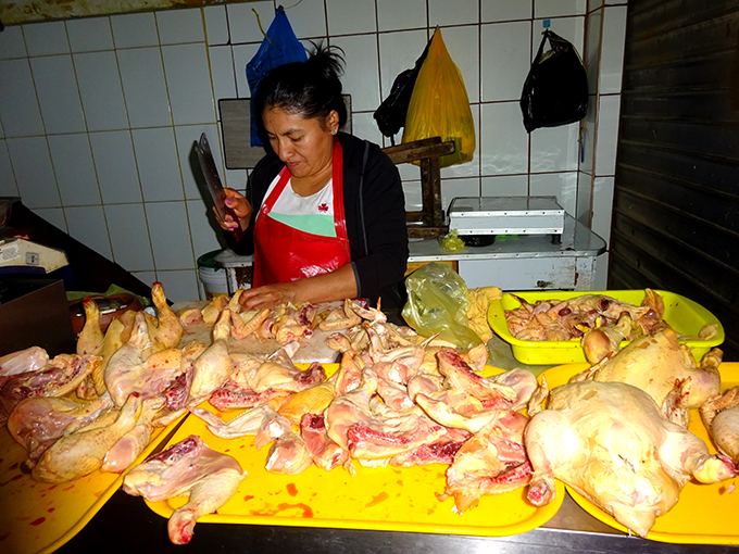“El kilo estaba entre 8 a 8.50 soles, pero subió a 16.50”, declaró una preocupada ama de casa. Al ser consultada una comerciante, dijo que los distribuidores incrementaron el precio porque hace 4 días que no les llega pollo de Lima.