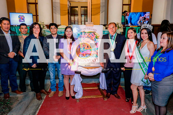 En palacio municipal, el alcalde de Huánuco, José Luis Villavicencio Guardia, y funcionarios, presentaron el programa y afiche oficial de las actividades del 480° aniversario de fundación española de la ciudad.