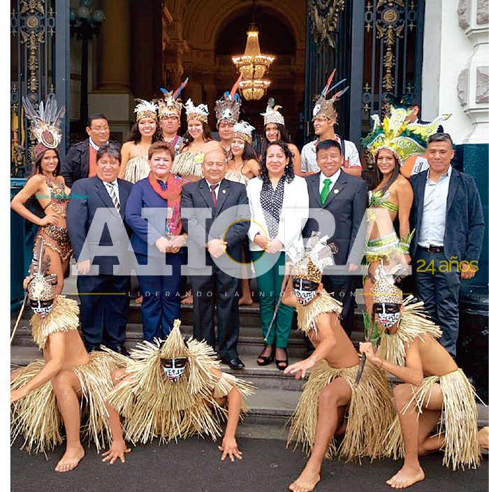 El alcalde de la provincia de Leoncio Prado, Miguel Meza Malpartida, presentó oficialmente el programa de la festividad patronal de San Juan 2019, en el salón de los Embajadores del Congreso de la República. Meza estuvo acompañado del presidente de la comisión central Edwin Durand Trujillo, y de los integrantes del taller de danzas Los Tulumayos, cuya vestimenta típica está confeccionada en base a bombonaje. Participó el presidente de la Comisión de Comercio Exterior y Turismo del Congreso, Moisés Guía Pianto y las congresistas Luz Rebeca Cruz Teves y María Ramos Rosales. El alcalde entregó a cada congresista el programa y afiche oficial de la fiesta de San Juan 2019, así como presentes de la artesanía local, bebidas típicas elaboradas en base a los cultivos emblemáticos como café y cacao, y para completar, el delicioso juane preparado con arroz y gallina de chacra. El alcalde resaltó las bondades naturales que tiene Tingo María y la hospitalidad de su gente, e invitó a los congresistas a visitar la “Ciudad de la Bella Durmiente” y disfrutar de sus hermosos atractivos turísticos. Al final de la presentación, todos los asistentes incluidos los integrantes de la Mesa de Honor, procedieron a danzar invitados por Los Tulumayos, con el acompañamiento musical del conjunto típico “Los Huambrillos de la Selva”.