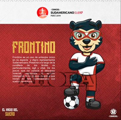 La Federación Peruana de Fútbol y la Conmebol, presentaron en la tarde de ayer a la mascota del Campeonato Sudamericano Sub-17 Perú 2019, que se disputará en nuestro país, en el estadio de la universidad de San Marcos, del 21 de marzo al 14 de abril; se trata de Frontino un oso de anteojos que viste los colores rojo y blanco de la selección peruana de fútbol.