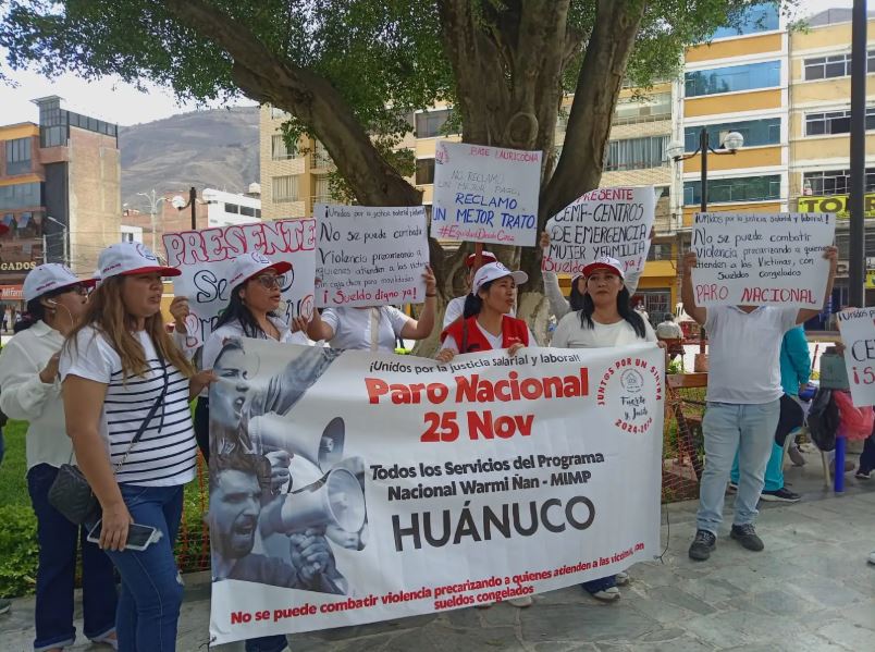 Más de 250 trabajadores del programa Warmi Ñan en Huánuco, perteneciente al Ministerio de la Mujer y Poblaciones Vulnerables (MIMP), acataron un paro nacional de 24 horas el último 25 de noviembre. La medida, según informaron delegadas sindicales, se realizó de forma coordinada en varias regiones del país y coincidió con el Día Nacional de la Eliminación de la Violencia contra la Mujer, como gesto simbólico ante lo que consideran un maltrato institucional.