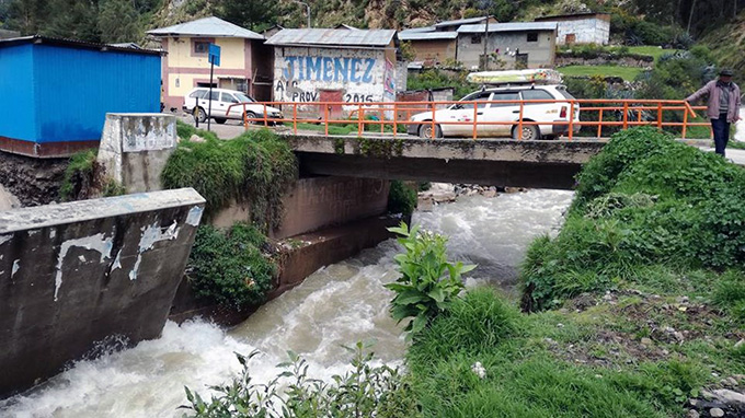 “El puente Chinche se encuentra a punto de caer por el crecimiento del caudal de río blanco, actualmente ya colapsaron los muros de contención”, advirtieron los moradores del lugar. Las autoridades comunicaron que los vehículos de alto tonelaje no podrán transitar por este puente porque está a punto de colapsar.