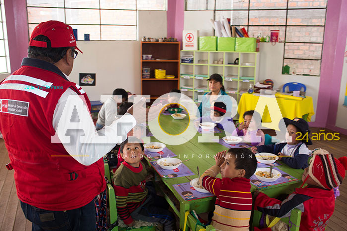 Señaló además que a través de los monitores de gestión local, Qali Warma, verifica la preparación, el servicio y consumo de desayunos y almuerzos, que son recibidos o preparados a diario por los padres de familia en coordinación con los comités de alimentación escolar de cada plantel.