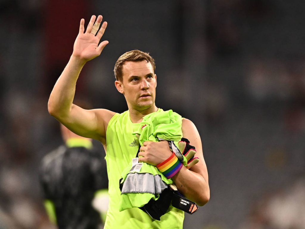 Manuel Neuer, capitán de la selección Alemana, lleva puesto un brazalete con el arcoíris, desde hace tres partidos. Se comenta que dicha pulsera de colores, Federación Alemana de Fütbol (DFB), ha querido mandar un mensaje a favor de la diversidad y los derechos de las minorías.