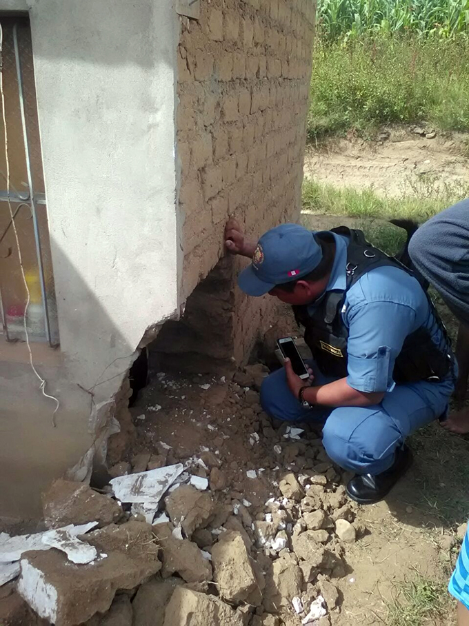 Agentes del serenazgo de dicho distrito que patrullaban la zona se percataron del hecho y dio aviso a la policía, quienes acudieron al lugar y constataron la existencia de un forado de 50 x 50 centímetros que los malhechores realizaron.