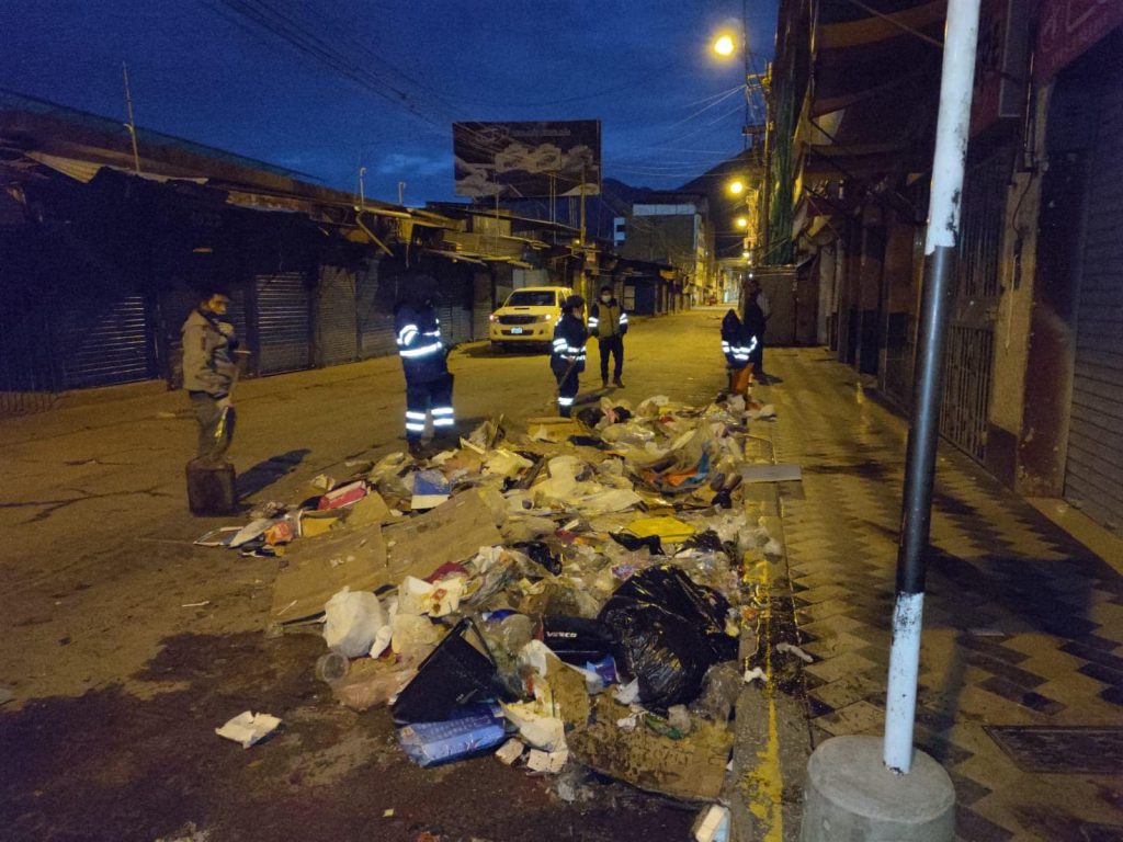 Los trabajadores de la Dirección de Gestión de Residuos Sólidos de la Municipalidad de Huánuco recogieron más de 100 toneladas de basura. Entre la noche del 24 y madrugada del 25 de diciembre. Producto de los ambulantes que tomaron las calles aledañas al mercado de Huánuco.