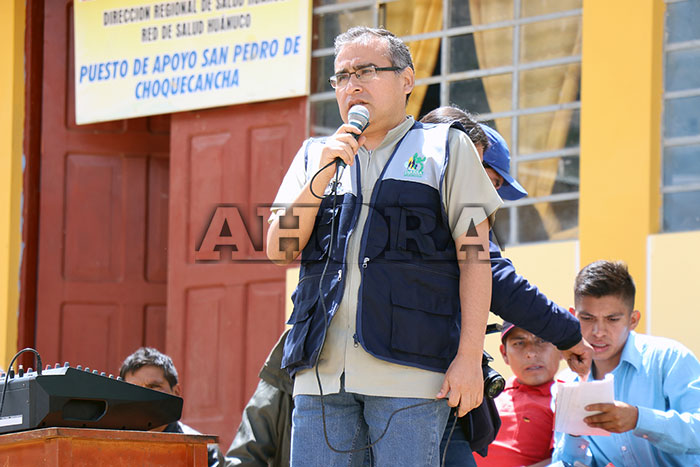 El director ejecutivo de la Red de Salud Huánuco, Alejandro Vicente Quispe, llegó a la comunidad de San Pedro de Choquecancha en el distrito de Santa María del Valle, para dialogar con los dirigentes y la población sobre la dotación de personal para el puesto de apoyo.