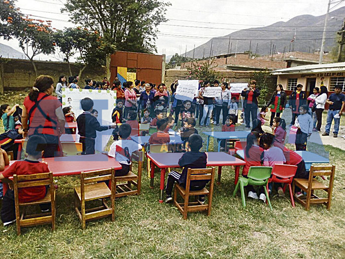 Tal como lo reseñamos en nuestra edición ayer, 81 niños estudian al aire libre, en el patio de la institución educativa ubicada en el centro poblado Corazón de Jesús (Yanag), en el distrito de Pillco Marca, pues el salón de triplay y calamina está a punto de colapsar y fue inhabilitado