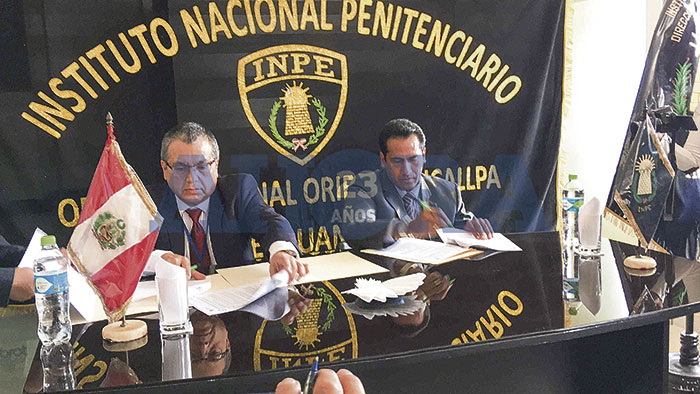 El director zonal de Senati Ucayali-Huánuco, Julio Diaz Medina, y el director general de la oficina regional Oriente Pucallpa del Inpe, Wilberth Carrasco Cavero, firmaron ayer el convenio con el cual se establecerán programas y actividades de capacitación para que los internos puedan acceder a capacitación y adiestramiento laboral que les permita reinsertarse al mercado laboral cuando salgan libres.