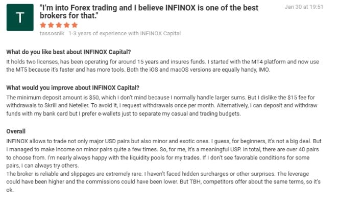 Comencemos con los comentarios sobre la plataforma de trading INFINOX, proporcionados por usuarios con diferentes presupuestos, mentalidades y niveles de experiencia. Cada reseña destaca tanto los aspectos positivos como los negativos del bróker.