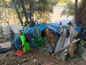 Agentes del serenazgo realizaron un operativo de limpieza en las riberas del río Huallaga, donde desalojaron e incautaron armas blancas.