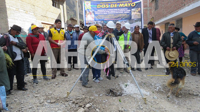 Con una inversión de más de S/ 4 millones y medio, la Municipalidad Provincial de Dos de Mayo pavimentará 26 cuadras de pistas y veredas de la ciudad de La Unión. Ayer, el alcalde Luis Maldonado Rivera, regidores y autoridades locales, colocaron la primera piedra de inicio de obra en los barrios Racri y Chacamayo.