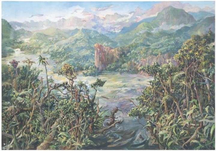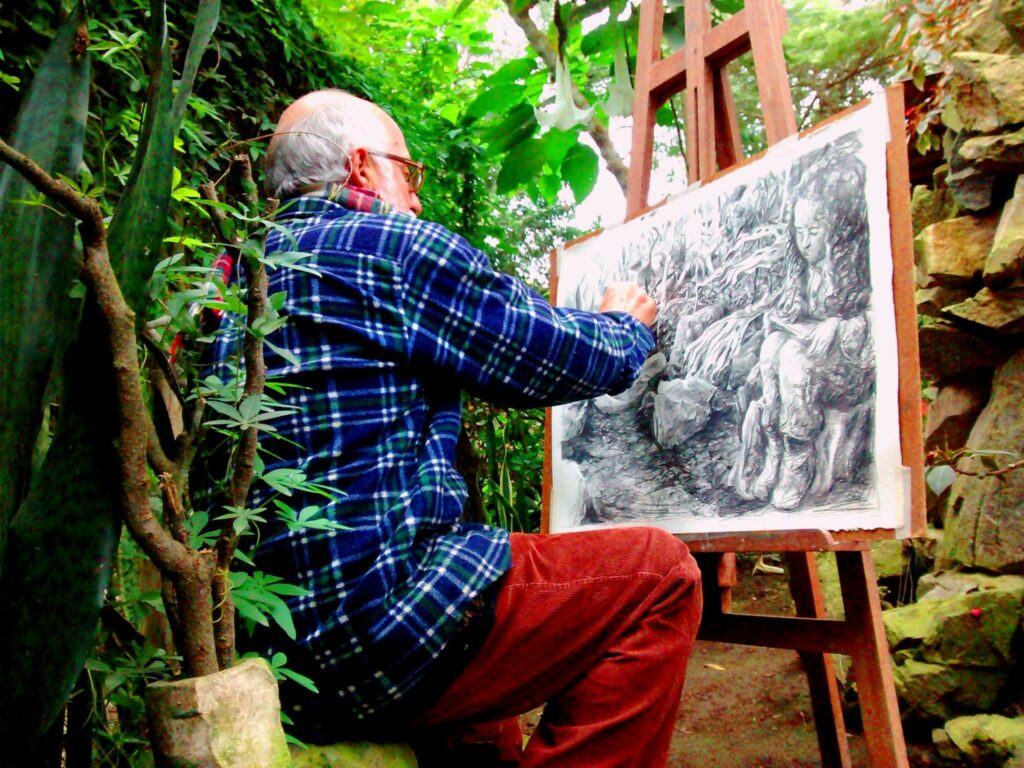 Comúnmente, se confunde técnica con arte y artista, técnica con creatividad, técnica con pintura… Salvador Velarde (1951) es un artista con técnica, una isla en este tejido urbano y, no porque haya decidido serlo, sino que sencillamente, siempre ha sido el mismo y sigue consecuente a esa existencia: observador inagotable, personaje asumiendo retos, construyendo bajo el tópico de paisaje. Todo lo que hay en su entorno ha cambiado. En el lugar donde para cualquier otro artista hace tiempo se hubiera consumido la inspiración asfixiada en el estrés, Salvador ha sabido sembrar miradas renovadas, con atisbos de junglas apocalípticas unas veces y barrocas sensualidades otras. Ha transformado y revitalizado la precaria naturaleza capitalina insuflándole misticismo y organicidad; equilibrio y frescura; personalidad y potencia. Dignidades que solamente un espíritu sensitivo podía salvar del fango. Ha unido su vida al territorio contemplativo confabulado por los Ychsma, mientras en la urbe se imponen la velocidad y el olvido, Salvador contrapone sosiego y memoria.
