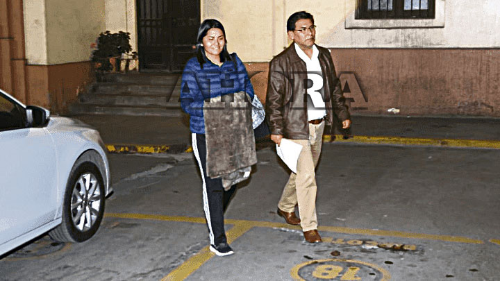 Carmela Paucará, junto a su abogado Humberto Abanto, se entregó en la sede de la Prefectura, en el centro de Lima, luego que se ordenó su detención junto con la de Pier Figari, Ana Herz de Vega y Vicente Silva Checa, asesores de Keiko Fujimori.
