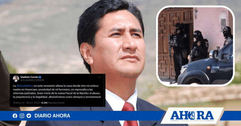 El Ministerio Público, en coordinación con la Diviac, allanó la vivienda de Bertha Rojas, madre de Vladimir Cerrón, en Huancayo.
