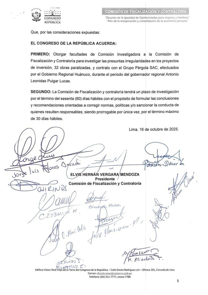 El Congreso de la República otorgó facultades de comisión investigadora a la Comisión de Fiscalización y Contraloría para revisar una…