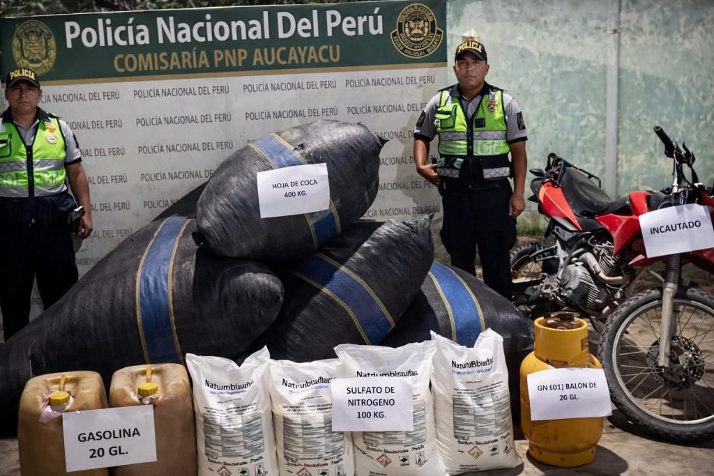 Intervienen punto de acopio de insumos para presunta elaboración de cocaína en Aucayacu