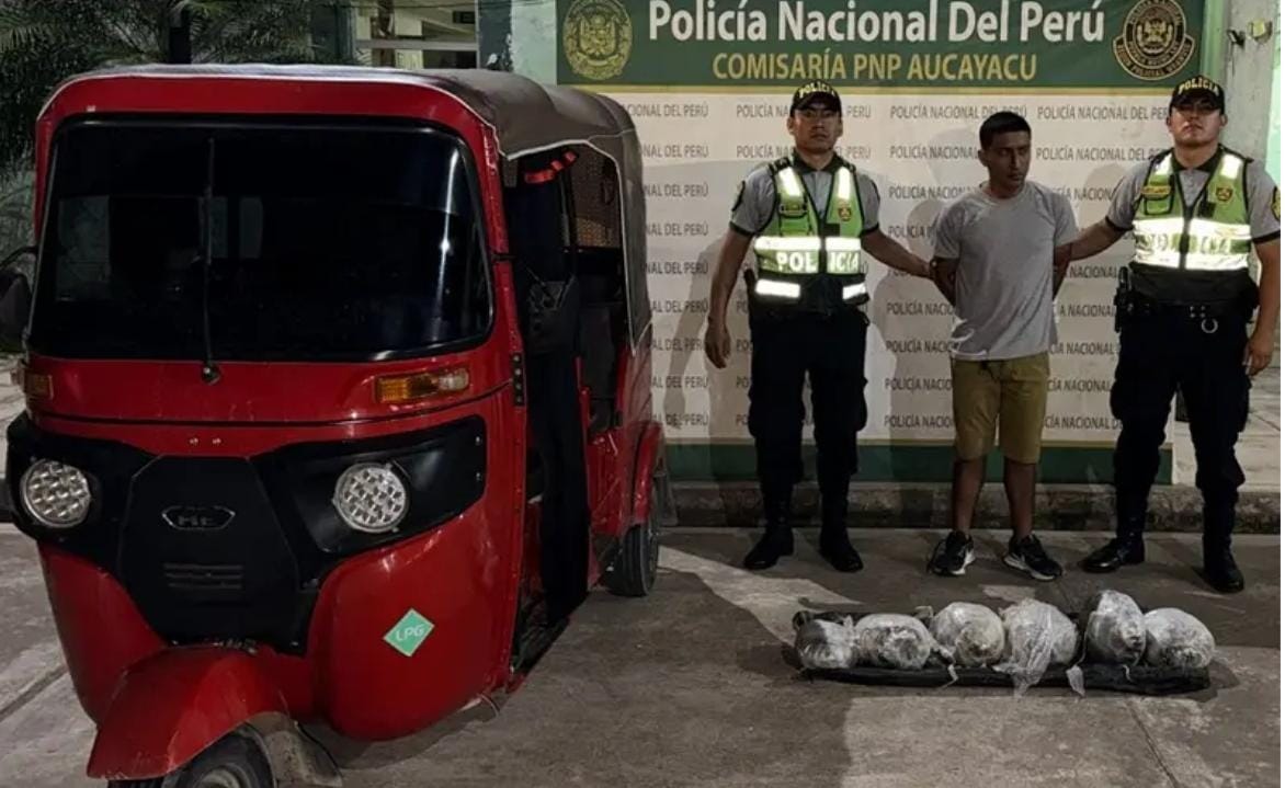 Intervienen a joven que trasladaba presunta marihuana en trimóvil durante operativo en Aucayacu