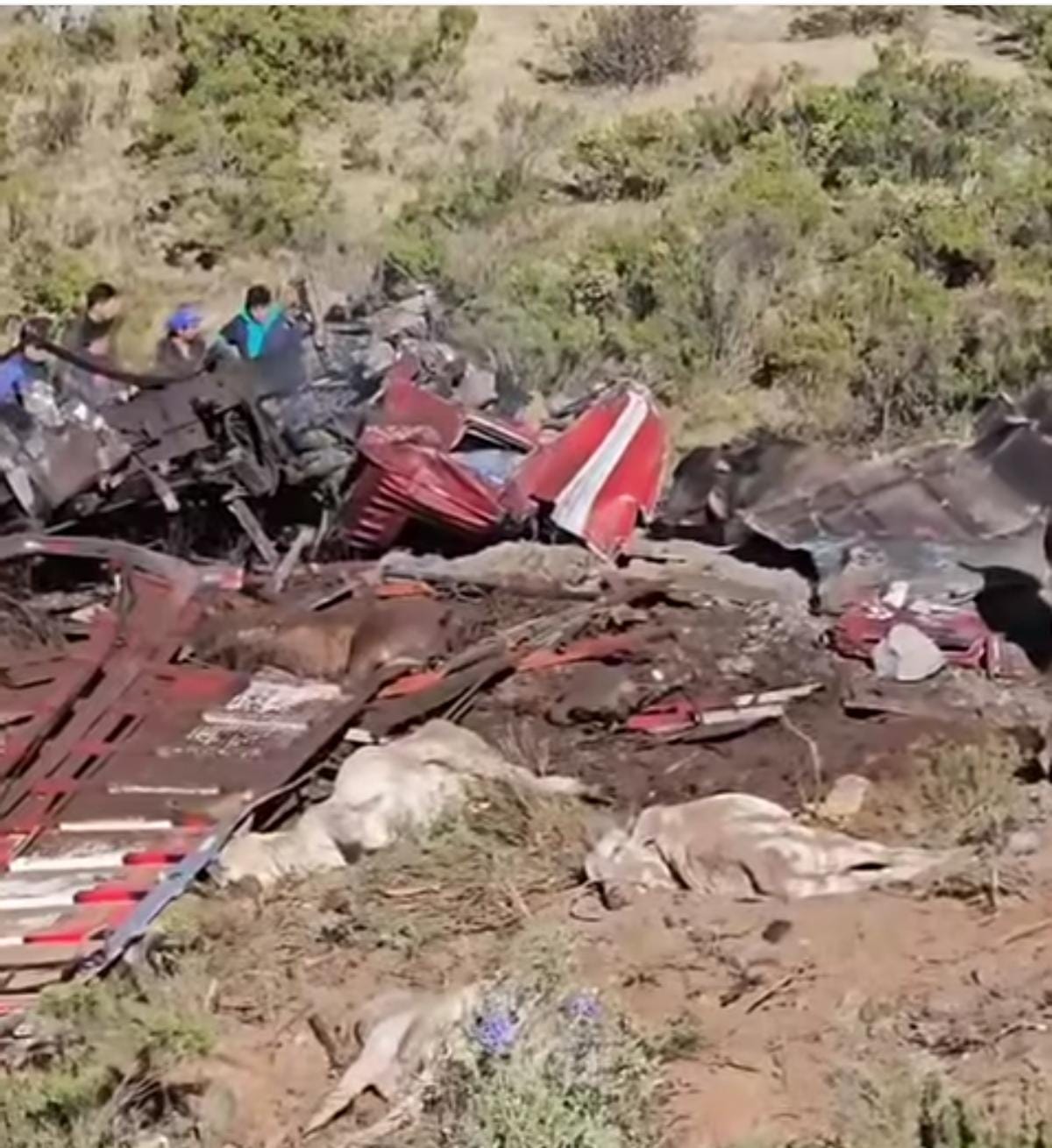 Camión cargado de ganado se despista y cae a un abismo en Canta