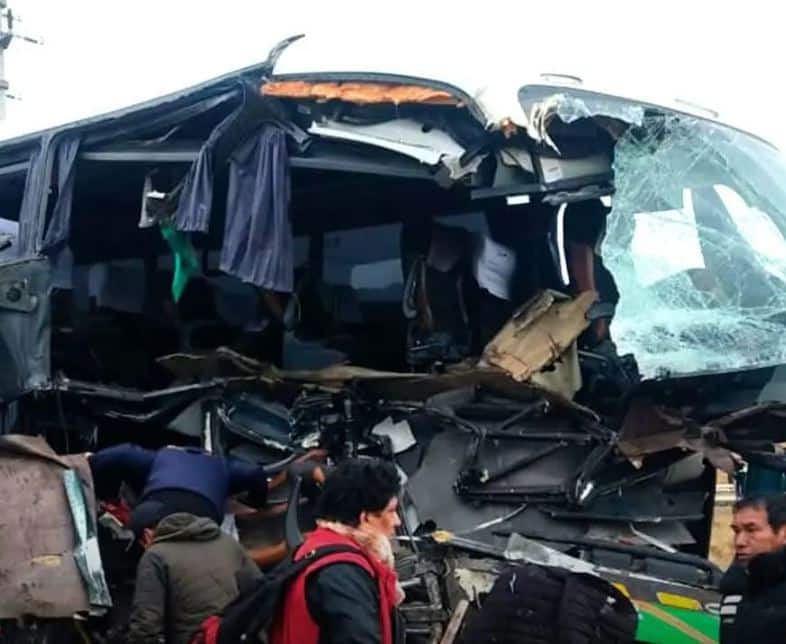 Dos fallecidos deja choque frontal entre camión y bus en la carretera central