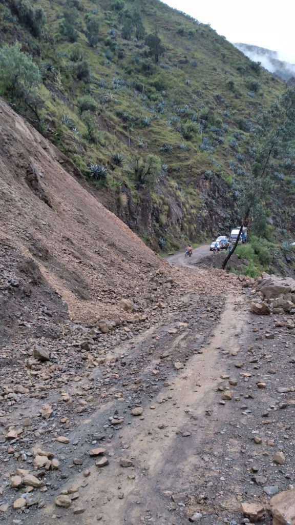 Debido a lluvias constantes, 600 metros de la carretera de acceso a los distritos de Cayna y Colpas están bloqueados.…