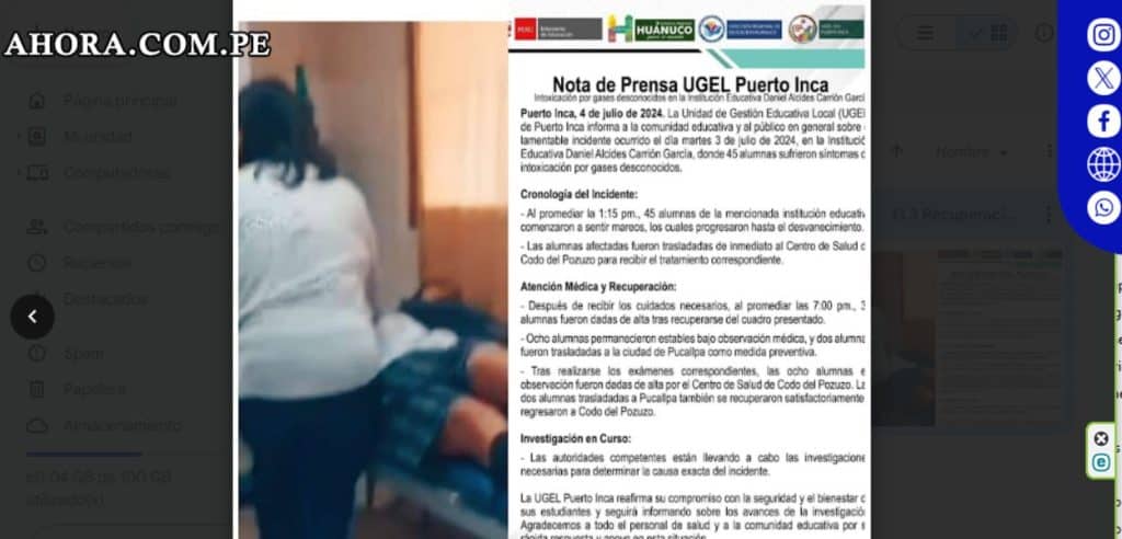 Masiva intoxicación de alumnos en colegio de Codo del Pozuzo