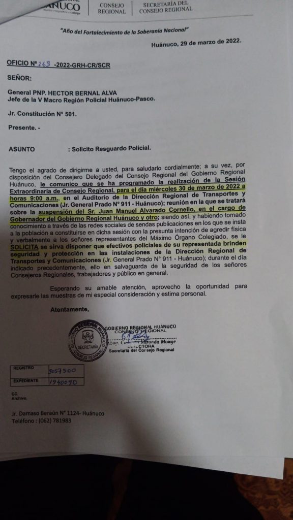 Consejo Regional elige hoy a vicegobernador. Solicitaron resguardo policial