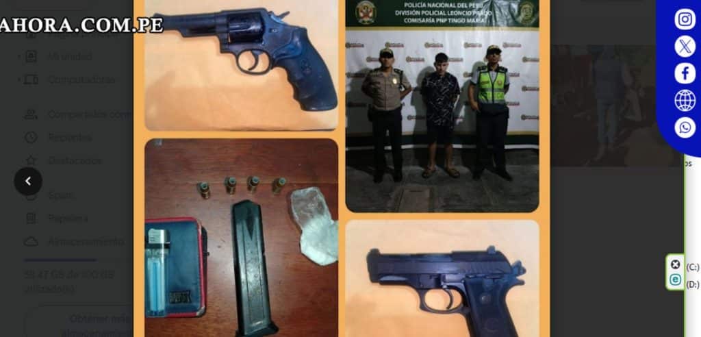 Capturan a sujeto en Tingo María con armas y cocaína