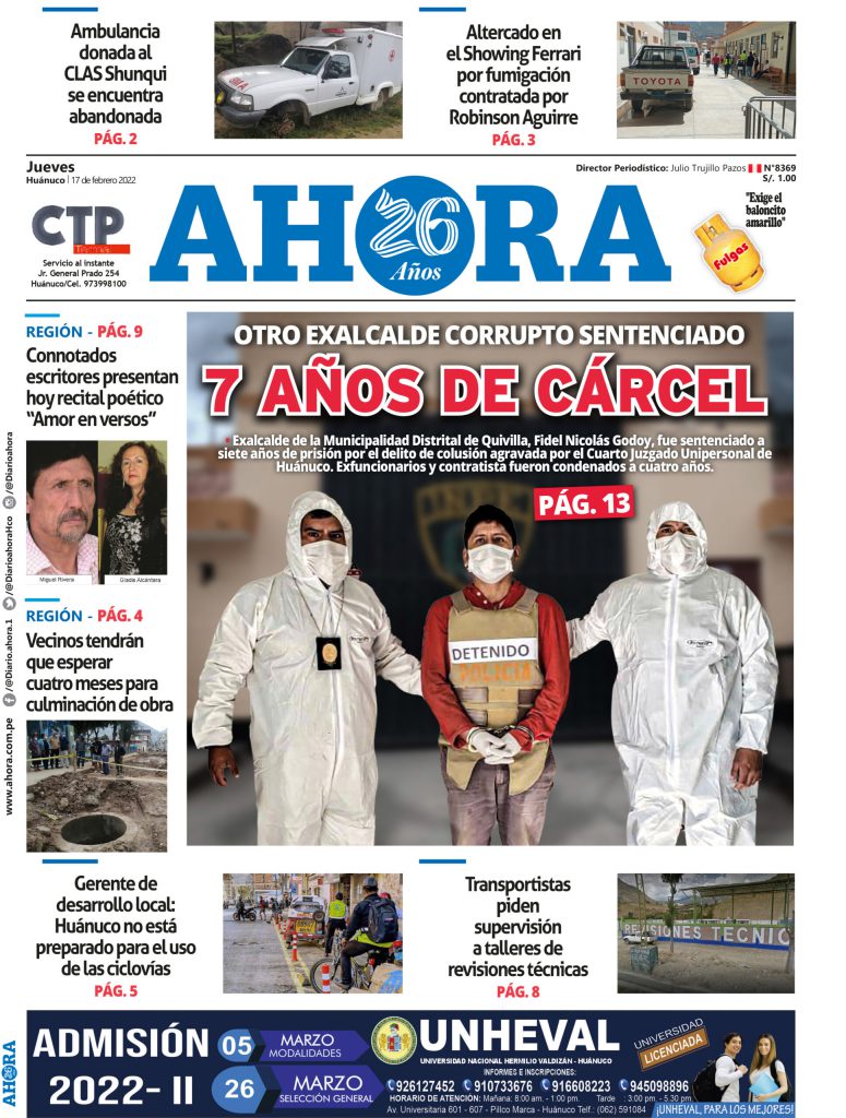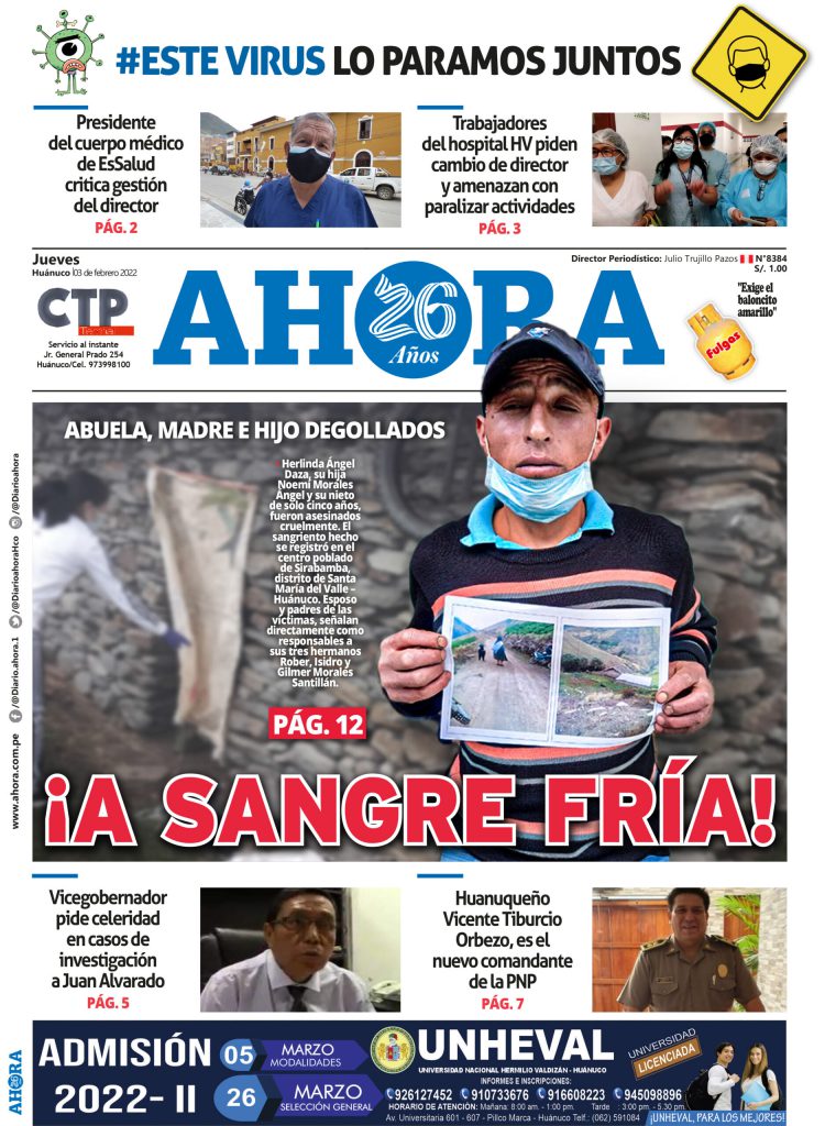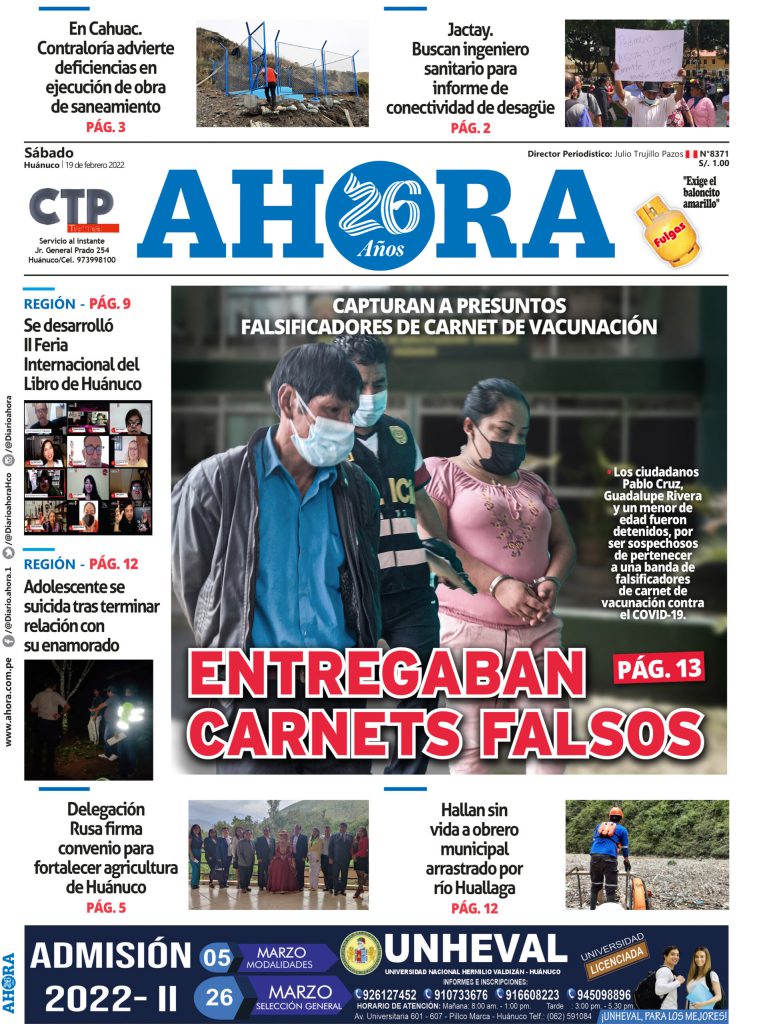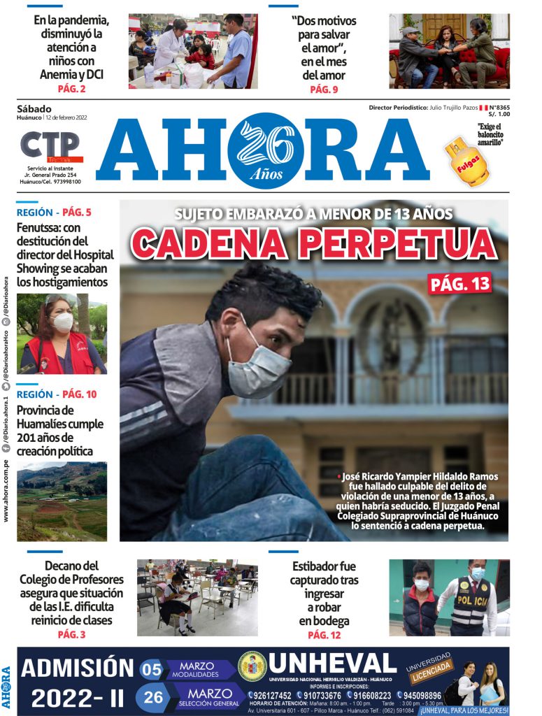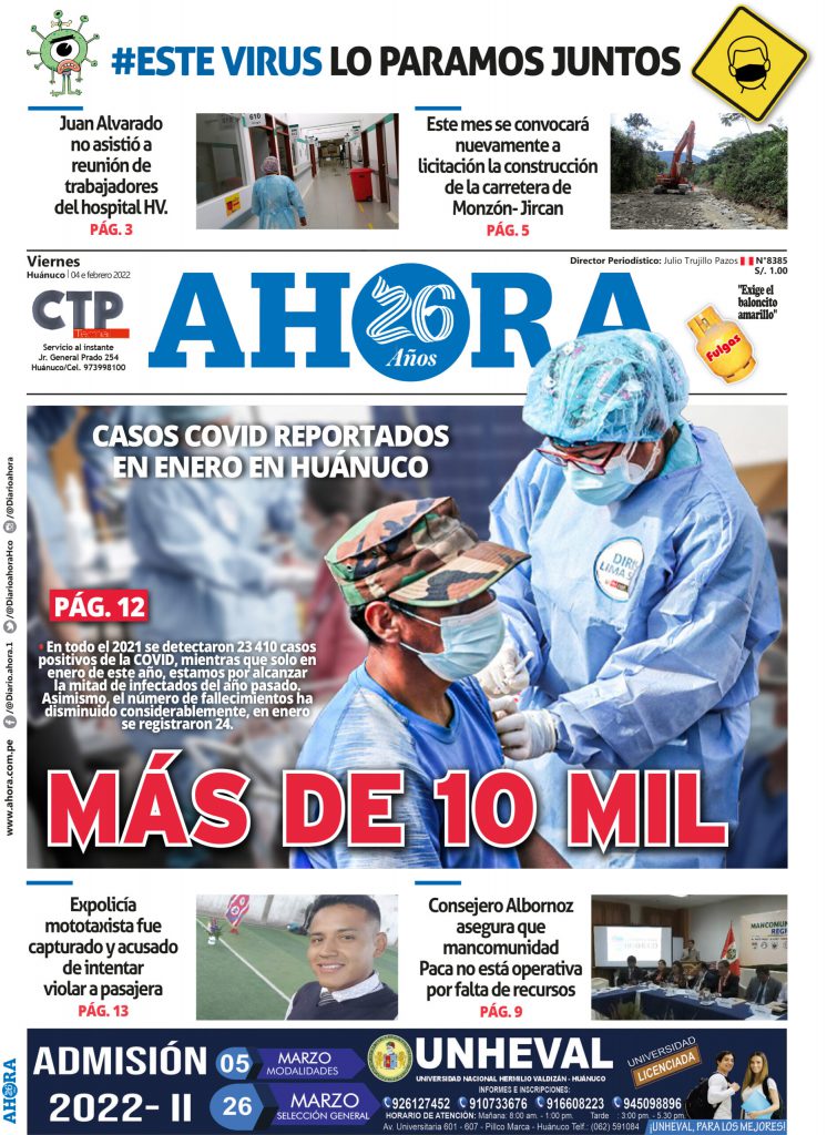 Edición Digital Diario Ahora 19/02/2022 https://issuu.com/diarioahorahuanuco.com/docs/edici_n_diario_ahora_19_2_