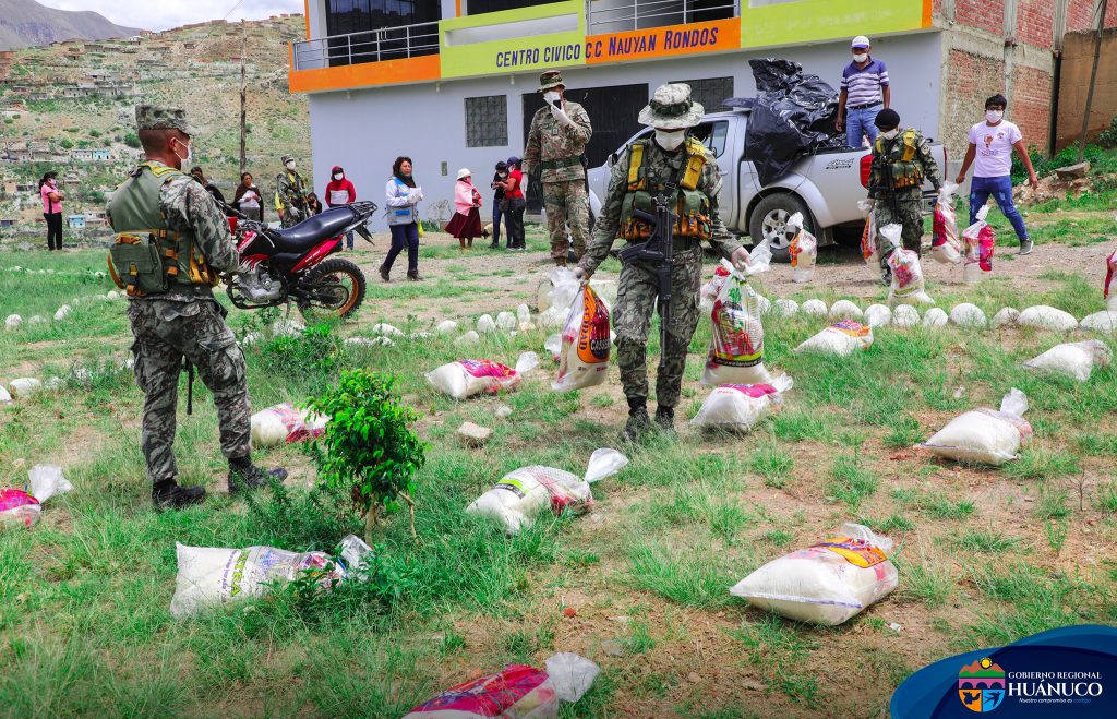 Con resguardo policial y militar entregan bolsas de alimentos en Amarilis