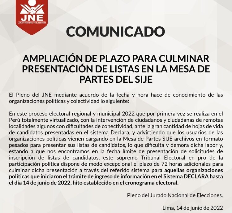 Elecciones 2022: Denuncian que prórroga de inscripción de candidatos beneficiaría a PL