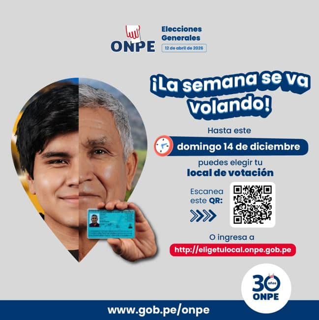 Elecciones 2026: Hasta el 14 de diciembre, votantes podrán elegir local de sufragio