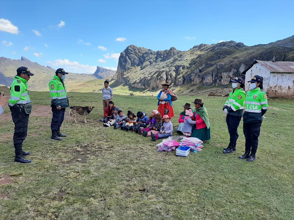 Policías de Margos donan cuadernos y mochilas a escolares de cinco caseríos