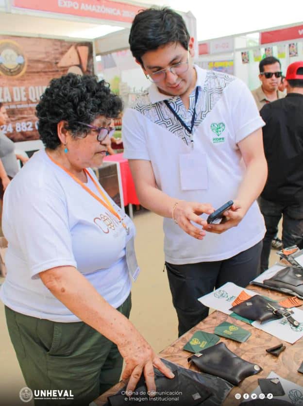 Estudiantes de la Unheval revolucionan la ExpoAmazónica 2025 con cuero ecológico hecho de residuos