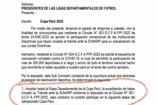 La CNFA de la FPF expidió un oficio circular. Con relación a la exigencia de los clubes de presentar su vigencia…