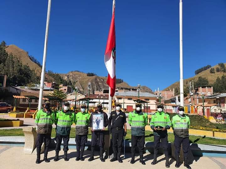 Policías de la comisaría de Dos de Mayo-La Unión, con badera a media asta, rindieron homenaje póstumo al suboficial de…